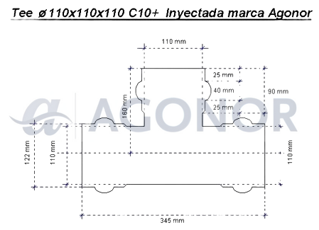 Tee DN110 Dimensiones